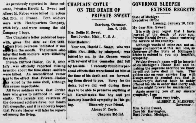 Harold Sweet was born in East Jordan, Michigan on January 24, 1897 to