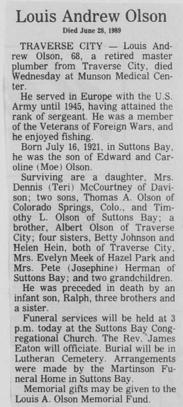 Children: Teri Olson, Timothy L. Olson, Thomas A. Olson,